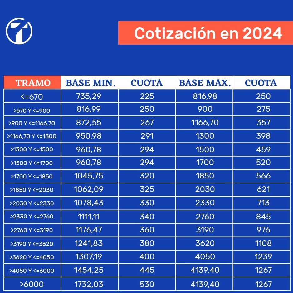 Para que quede más claro indicamos una tabla de cotización como referencia, la de 2024: