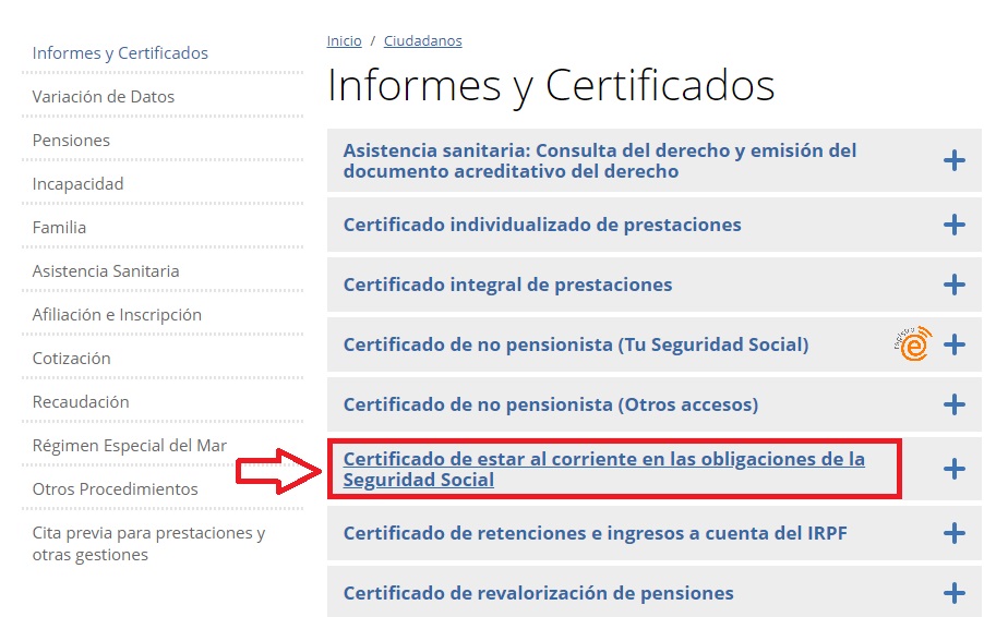 Desde el inicio de TGSS sede electrónica, haz clic en el apartado de “Ciudadanos” y después “Informes y certificados”. Su solicitud puede hacerse no solo con certificado electrónico, sino también con usuario y contraseña o Cl@ve Pin. Aunque siempre te recomiendo que ya cuentes con tu DNI electrónico, ya que para esto y para otros muchos trámites es fundamental.