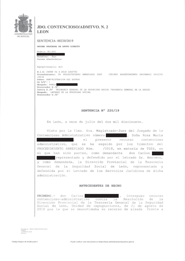 SENTENCIA EJEMPLO CASO DE ÉXITO EN LA RECLAMACIÓN DEL IMPORTE DE LA CUOTA DE AUTÓNOMO SOCIETARIO