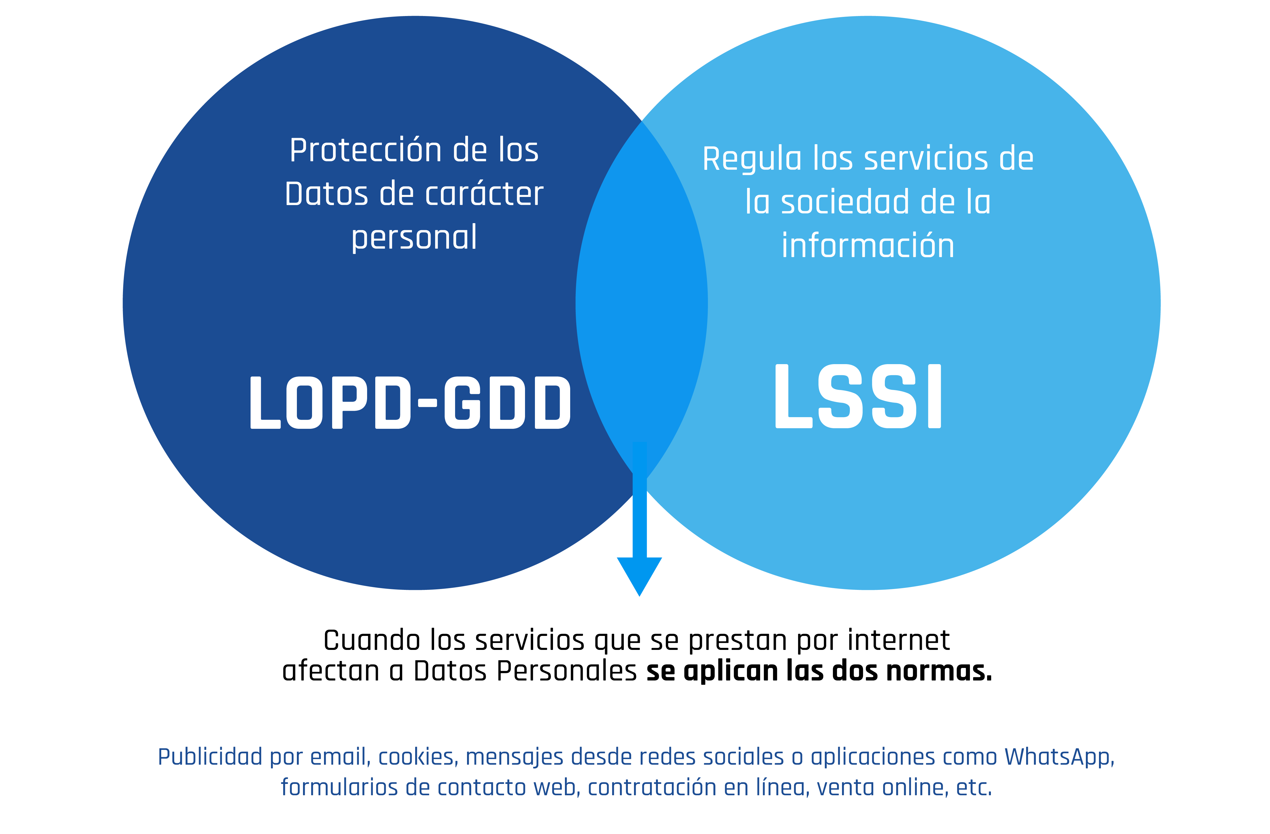 La Ley del consumidor, la LOPD-GDD (Ley Orgánica de Protección de Datos y Garantías de Derechos Digitales) y la LSSI (Ley de Servicios de la Sociedad de la Información y el Comercio Electrónico), están estrechamente relacionadas. Cada normativa da cobertura legal a distintos ámbitos, aunque todos relacionados con la protección de datos sensibles en el desarrollo de alguna actividad económica y prestación de servicios.