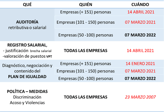 Obligación del Plan de Igualdad y Plazos de cumplimiento