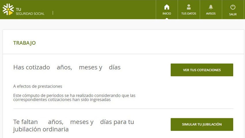 Tras introducir los datos de acceso correctamente, te aparecerá una nueva ventana en la que podrás seleccionar varias opciones, entre ellas “simular tu jubilación”. Deberás hacer clic en esta para calcular tu pensión.